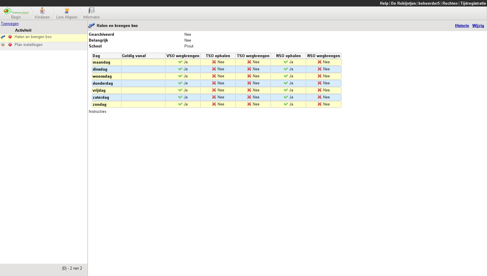 Hier kunt u voor alle akties in de groep module instructies opgeven en invul sjablonen.