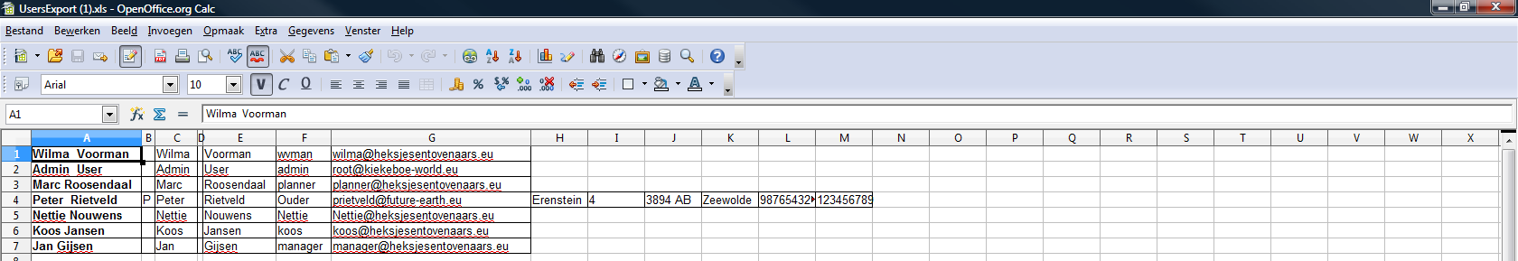 Het overzicht van gebruikers wordt gedownload in Excel-formaat. De meeste office-pakketen kunnen hiermee omgaan. Ook kunnen Excel-bestanden gebruikt worden om data te importeren in databases.