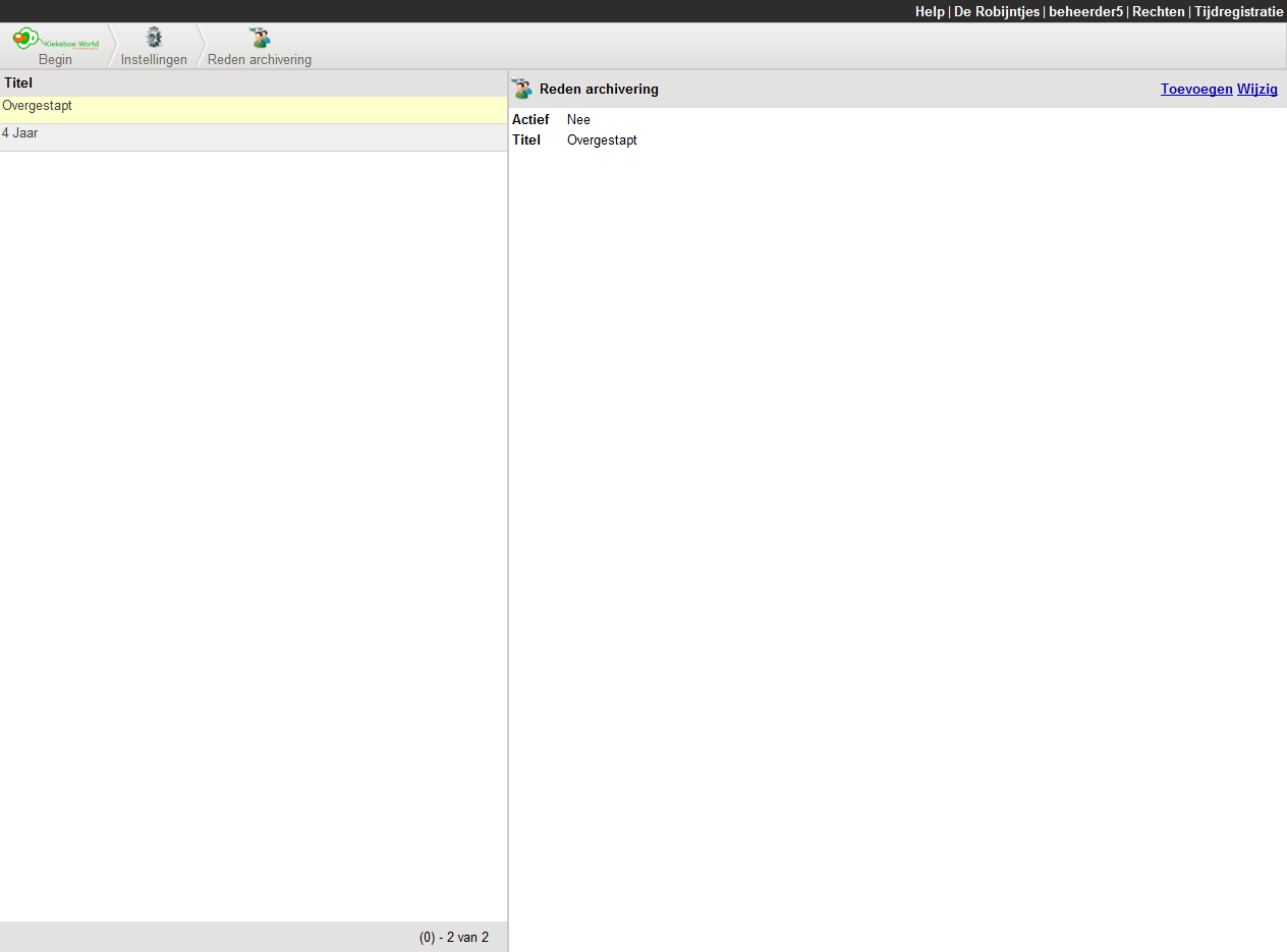 Hier kunt u de redenen beheren waarom u kinderen op gearchiveerd hebt gezet.