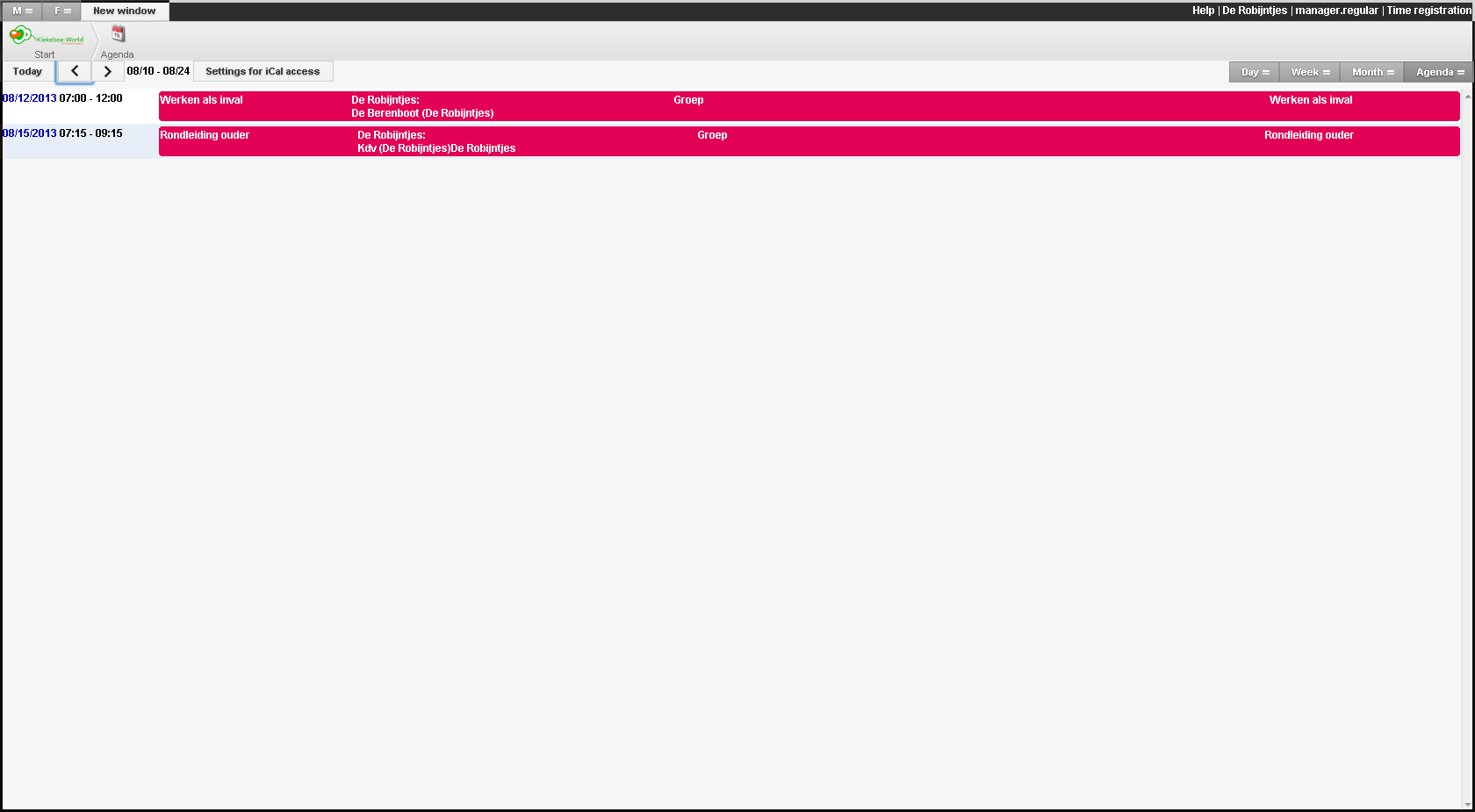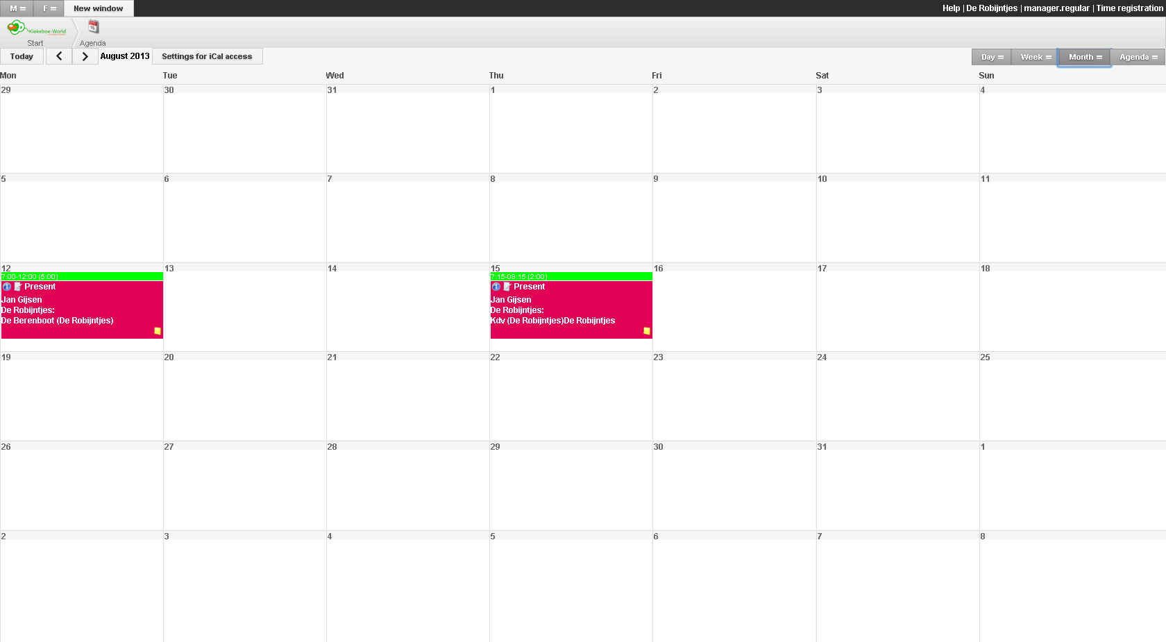 U kunt als gebruiker uw agenda inzien en agendapunten aanmaken. Agendapunten zijn op zichzelf staande agendapunten of maken deel uit van een reeks. Dit zijn telkens terugkerende agendapunten ingesteld per periode. Ook kunt u bestaande agendapunten aanpassen. Helaas is het nog niet mogelijk een omschrijving in te voeren bij het aanmaken van het agendapunt, dit zal in de toekomst wel mogelijk worden.