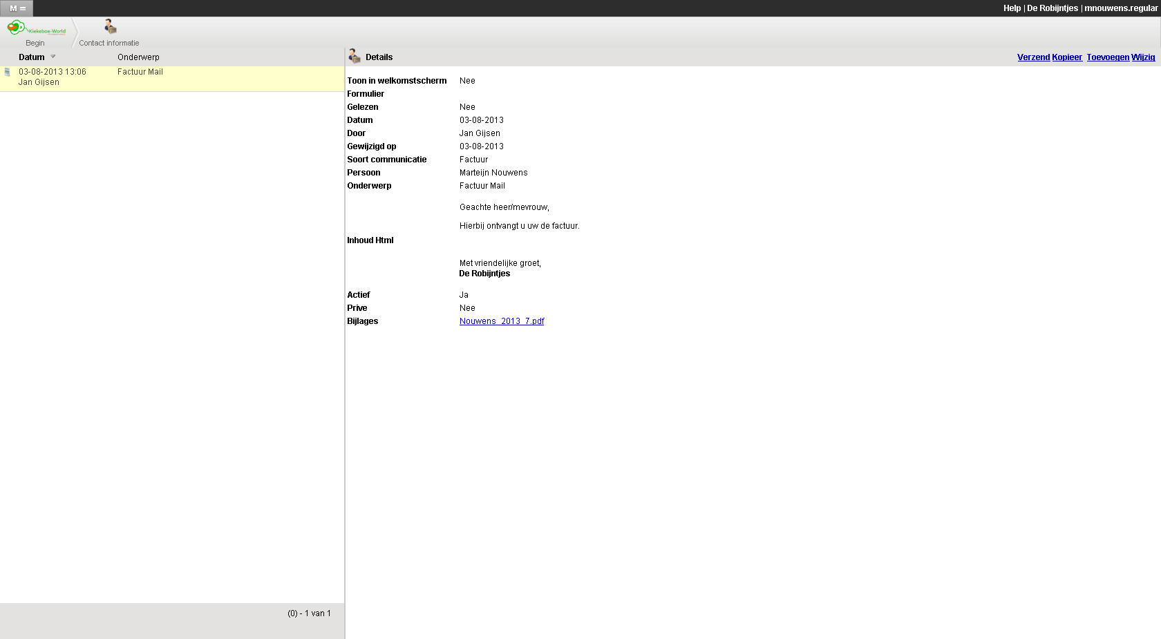 Bekijk Contact informatie geeft een duidelijk overzicht van alle Contact informatie. U kunt facturen inzien of downloaden. Downloaden van een factuur kan via de download-knop aan het eind van de regel in het overzicht. Op deze manier kunt u de digitale factuur gebruiken voor uw eigen opslag, of
