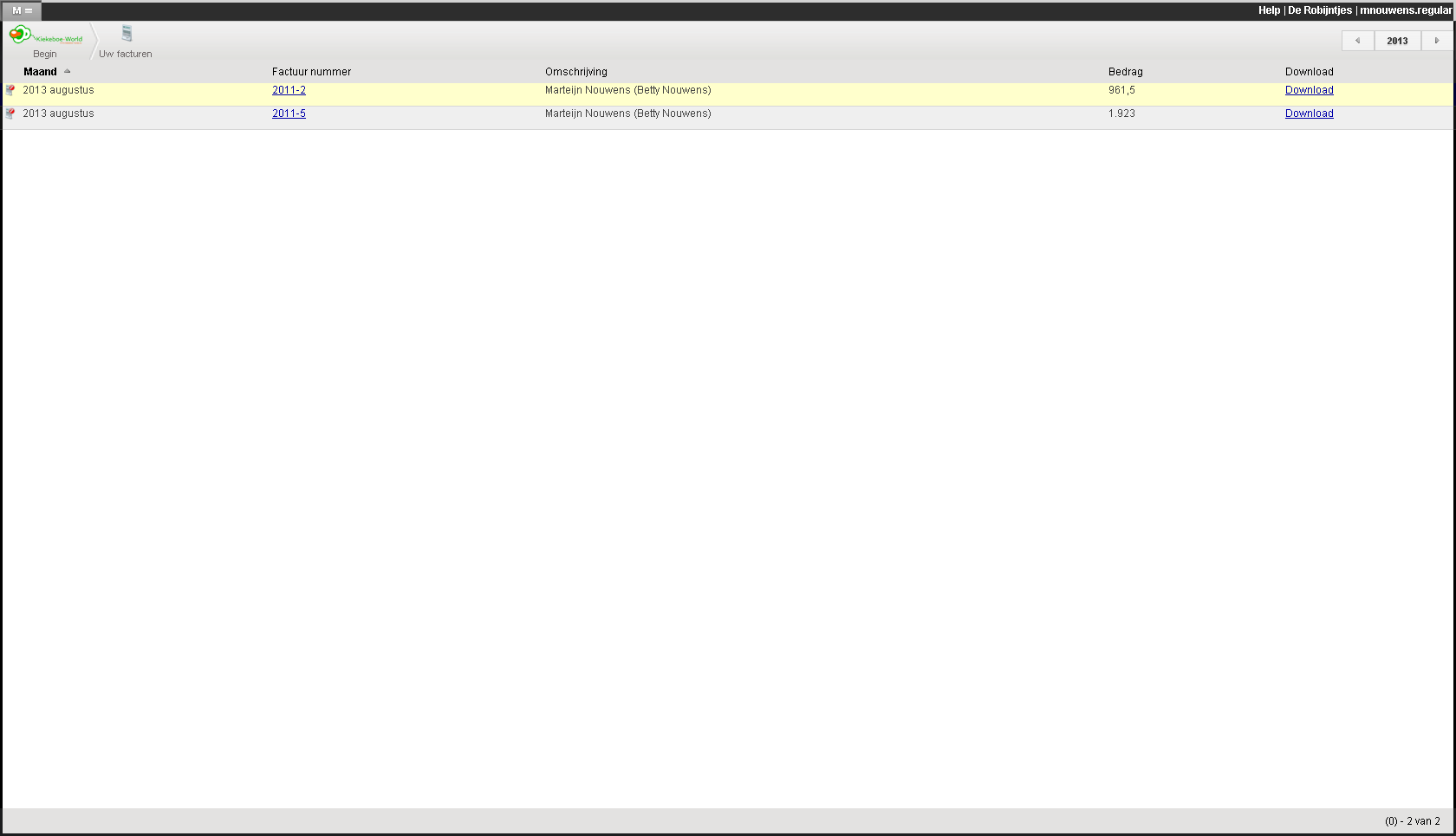 Bekijk uw facturen geeft een duidelijk overzicht van al uw facturen. U kunt facturen inzien of downloaden. Downloaden van een factuur kan via de download-knop aan het eind van de regel in het overzicht. Op deze manier kan u de digitale factuur gebruiken voor uw eigen opslag, of de factuur