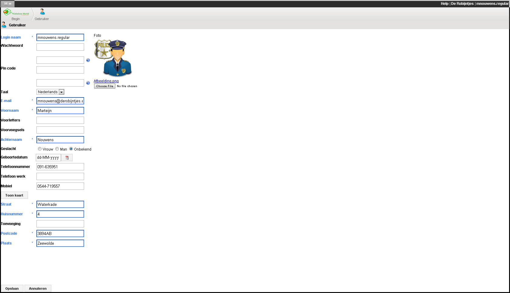 Als u uw gegevens wilt aanpassen klikt u op de link "Wijzig" aan de rechterkant van het scherm. Daarmee opent u een nieuw scherm met alle mogelijke velden die u in kunt vullen. De velden met een blauw kader zijn verplicht, de andere velden zijn optioneel. Nadat u alle gegevens heeft ingevuld klikt u op "Opslaan". Daarmee zijn uw gegevens aangepast en opgeslagen. Bij het aanpassen van uw wachtwoord dient u opnieuw in te loggen.